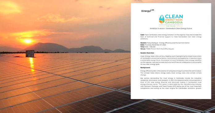ភ្នំពេញ៖ នៅថ្ងៃទី៧ ខែវិច្ឆិកានេះ កម្ពុជា បានជួបពិភាក្សាសប្តាហ៍ថាមពលស្អាតឆ្នាំ២០២៤ ក្នុងការដាក់ការផ្លាស់ប្តូរថាមពលស្អាតរបស់កម្ពុជា និងបង្កើនកិច្ចសហការផ្នែកបច្ចេកទេស និងហិរញ្ញវត្ថុ ដើម្បីសម្រេចបាននូវគោលដៅថាមពលស្អាតថ្មីរបស់ខ្លួន។