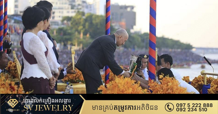 ភ្នំពេញ ៖ ព្រះករុណាជាអម្ចាស់ជីវិតលើត្បូង ព្រះបាទសម្ដេចព្រះបរមនាថ នរោត្ដម សីហមុនី ព្រះមហាក្សត្រ នៃព្រះរាជាណាចក្រកម្ពុជា ស្តេចសព្វព្រះរាជហឬទ័យប្រទានរង្វាន់ដល់ទូកជ័យលាភី ក្នុងថ្ងៃផ្តាច់ព្រ័ត្រ នៃព្រះរាជពិធីបុណ្យអុំទូក បណ្តែតប្រទីប និងសំពះព្រះខែ អកអំបុក នាល្ងាចថ្ងៃទី១៦ ខែវិច្ឆិកា ឆ្នាំ២០២៤ នៅមុខព្រះបរមរាជវាំង រាជធានីភ្នំពេញ។