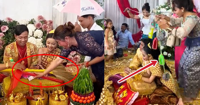 ជាក់ស្តែង តាមរយៈវីដេអូ បានបង្ហាញក្រុមស្រ្តីអ្នកចូលរួមមានទាំងក្មេង និងចាស់ បាននាំគ្នាយករបស់របរដូចជា ច្រាស់បោកខោអាវ ប្រដាប់លាងចាន និងសូម្បីអំបោស ប្រដាប់កើបសំរាម មកចងដៃ ដាក់លើខ្នើយមង្គល ដែលឃើញហើយ ពិតជាគួរឲ្យហួសចិត្តខ្លាំងតែម្តង។