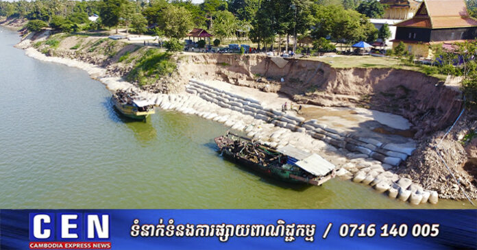 សូមជម្រាបថា ការងារសាងសង់ច្រាំងទន្លេបានចាប់ផ្ដើមពីថ្ងៃទី២៣ ខែធ្នូ ឆ្នាំ២០២៤ បើគិតមកដល់ថ្ងៃទី៧ ខែមករា ឆ្នាំ២០២៥ វឌ្ឍនភាពការងារសម្រេចបានប្រមាណ ៦៥% ក្នុងនោះរួមមាន៖ ១)ការពារជើងក្រោម សម្រេចបាន ១០០% និង ២)ការងាររៀបបាវខ្សាច់ជាកាំជណ្តើរដើម្បីបំពេញខ្សាច់នៅកន្លែងបាក់ស្រុត សម្រេចបាន ៣៥% ។