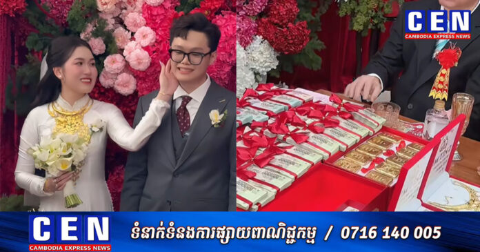 គូស្នេហ៍ជនជាតិវៀតណាមមួយគូ បានធ្វើឱ្យអ្នកនិយមលេងអ៊ីនធឺណិតភ្ញាក់ផ្អើល ខណៈបានដឹងថា ពិធីមង្គលការរបស់ពួកគេពោរពេញទៅដោយភាពអធិកអធម ដើម្បីស្វាគមន៍ឆ្នាំថ្មី ជាមួយគ្រឿងតុបតែងលម្អ និងថ្លៃបណ្ណាការដ៏មិនធម្មតា ដែលស័ក្តិសមនឹងអ្នកជំនួញធំៗពីរមែន! ខណៈកូនក្រមុំគឺជាកូនស្រីរបស់ម្ចាស់ក្រុមហ៊ុនសំណង់មួយកន្លែង នៅក្នុងខេត្ត Hue Giang ចំណែកកូនកំលោះវិញ ជាកូនប្រុសរបស់ម្ចាស់ហាងមាសដ៏ល្បីល្បាញមួយក្នុងខេត្ត Can Tho ។