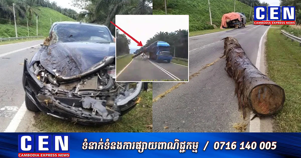 វីដេអូឃ្លីបមួយ ដែលកំពុងត្រូវបានចែកចាយនៅលើបណ្តាញសង្គម ដែលថតបាននូវខណៈពេលរថយន្ត១គ្រឿង ត្រូវបានវាយប្រហារដោយឈើហុប ធ្លាក់ពីលើឡានដឹកធុនធំ១គ្រឿង បានធ្វើឲ្យអ្នកទស្សនាឃើញស្តែងៗហើយ ស្លុតរន្ធត់ខ្លាំងតែម្តង។
