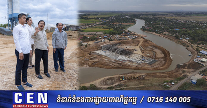 នៅរសៀលថ្ងៃចន្ទ ទី២៤ ខែកុម្ភៈ ឆ្នាំ២០២៥នេះ ឯកឧត្តម ថោ ជេដ្ឋា រដ្ឋមន្ត្រីក្រសួងធនធានទឹក និងឧតុនិយម អមដំណើរដោយឯកឧត្តមជាថ្នាក់ដឹកនាំ មន្ត្រីបច្ចេកទេសក្រសួង និងមន្ទីរធនធានទឹក និងឧតុនិយមខេត្តកំពង់ធំ បានអញ្ជើញចុះពិនិត្យវឌ្ឍនភាពនៃគម្រោងអភិវឌ្ឍន៍សំណង់ស្ទាក់ទឹកកំពង់គោ ស្ថិតក្នុងភូមិកំពង់គោលើ ឃុំកំពង់គោ ស្រុកកំពង់ស្វាយ ខេត្តកំពង់ធំ។