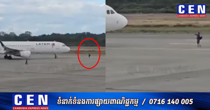 បុរសអ្នកដំណើរម្នាក់បានទៅឈរនៅពីមុខយន្តហោះរបស់ក្រុមហ៊ុនអាកាសចរណ៍ LATAM Airlines ដែលកំពុងរៀបចំធ្វើដំណើរទៅកាន់ទីក្រុង Concepción ដោយបុរសនោះបានព្យាយាមគ្រវីដៃ ទៅកាន់អ្នកបើកយន្តហោះ ក្នុងគោលបំណងដើម្បីឱ្យគាត់បានឡើងយន្តហោះ។