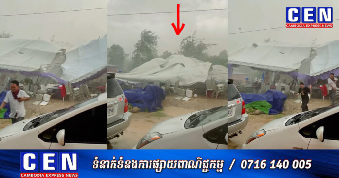 អ្វីដែលគួរឲ្យរន្ធត់ចិត្តទៀតនោះ គឺនៅថ្ងៃដដែលនេះ (១៦ មីនា) ភ្លៀងលាយឡំខ្យល់កន្ត្រាក់ ក៏បានវាយប្រហាររោងការមួយកន្លែង នៅភូមិសំបួរ ស្រុកសាលាក្រៅ ខេត្តប៉ៃលិន បណ្តាលឲ្យរោងការប៉ើងរាបដល់ដីតែម្តង។ ជាមួយស្ថានភាពដ៏ធ្ងន់ធ្ងរបែបនេះ ប្រាកដណាស់ មិនអាចទទួលភ្ញៀវបានទេ ដែលធ្វើឲ្យម្ចាស់ដើមការប្រឈមមុខនឹងការខាតឡុងចុងយ៉ាងខ្លាំង។