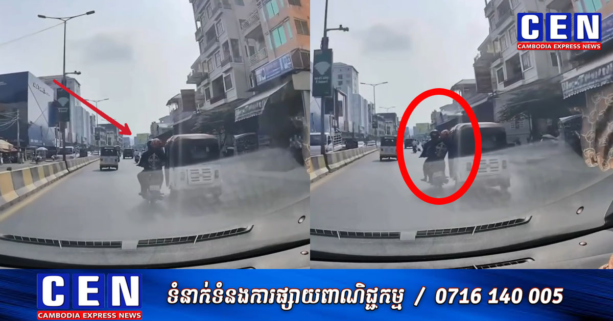 យ៉ាងណាមិញ ថ្មីៗនេះ ករណីឆក់ទូរស័ព្ទអ្នកដំណើរតាមកង់បីបានកើតឡើងទៀតហើយ ខណៈវីដេអូកាមេរ៉ាសុវត្ថិភាពរថតយន្ត បានបង្ហាញចោរស្ទាវ២នាក់ ជិះម៉ូតូឌ្រីមសង់ ធ្វើសកម្មភាពឆក់ទូរស័ព្ទស្តែងៗ ពីអ្នកដំណើរជិះក្នុងកង់បី បានសម្រេច រួចជិះគេចខ្លួនបាត់ស្រមោលតែម្តង។