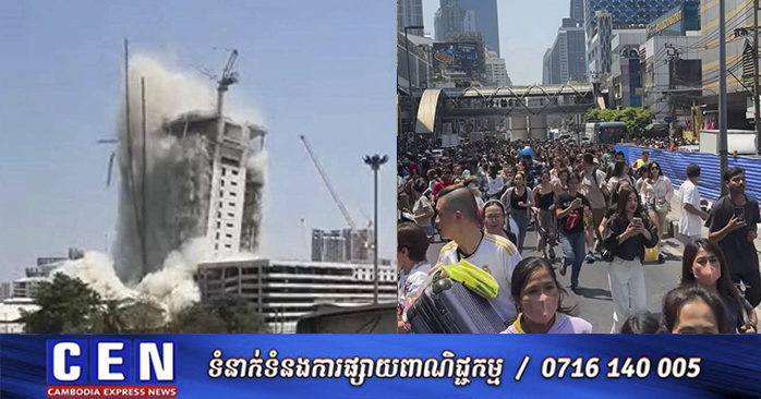 រាជធានីបាងកក នៃប្រទេសថៃ បានជួបគ្រោះរញ្ជួយដីកម្រិតធ្ងន់៧.៣រ៉ិចទ័រ នៅថ្ងៃសុក្រទី២៨ខែមីនាឆ្នាំ២០២៥ បង្កការភ័យស្លន់ស្លោ ខណៈមនុស្សមួយចំនួនរត់ចេញពីអគារ រកកន្លែងសុវត្ថិភាព។