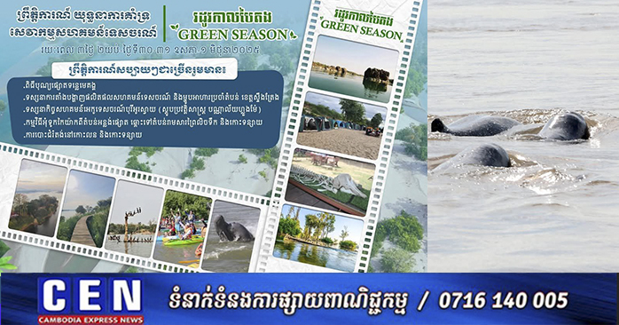 ក្រសួងទេសចរណ៍ សូមអំពាវនាវដល់ ឯកឧត្តម លោកជំទាវ លោក លោកស្រី អ្នកនាង កញ្ញា និងសាធារណជនទាំងអស់ចូលរួមឱ្យបានច្រើនកុះករ ជាពិសេសរួមគ្នាជំរុញ ផ្សព្វផ្សាយ និងលើកកម្ពស់វិស័យទេសចរណ៍នារដូវកាលបៃតង (Green season) ស្របតាមយុទ្ធនាការ ផ្សព្វផ្សាយ “ទេសចរណ៍ដើម្បីទាំងអស់គ្នា ទាំងអស់គ្នាដើម្បីទេសចរណ៍” “ទេសចរណ៍រីកលូតលាស់ក្នុងសន្តិភាព និង “បុគ្គលម្នាក់ៗជាអ្នកផ្សព្វផ្សាយទេសចរណ៍កម្ពុជាម្នាក់”៕ រក្សាសិទ្ធដោយ៖សុទ្ធលី