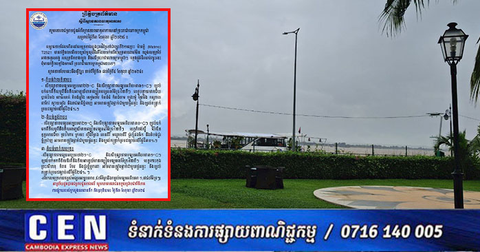 ក្រសួងធនធានទឹក និងឧតុនិយម បានឲ្យដឹងថា ចាប់ពីថ្ងៃទី៣ដល់ថ្ងៃទី៥ ខែតុលា ឆ្នាំ២០២៥នេះ នៅភ្នំពេញ និងតាមបណ្តាខេត្តនានា នឹងបន្តមានភ្លៀងធ្លាក់ជាមួយផ្គរ រន្ទះ ខ្យល់កន្ត្រាក់ ដោយគ្របដណ្តប់លើ ផ្ទៃដីចាប់ពី២៥ទៅ៣០ភាគរយ។