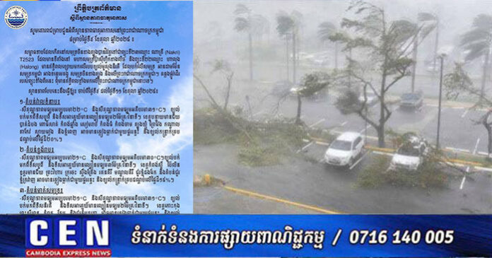ភ្នំពេញ ៖ ក្រសួងធនធានទឹកនិងឧតុនិយម បានចេញសេចក្តីជូនដំណឹងពីស្ថានភាពធាតុអាកាសនៅព្រះរាជាណាចក្រកម្ពុជា សម្រាប់ថ្ងៃទី៩ ខែតុលា ឆ្នាំ២០២៥៖សម្ពាធទាបដែលកើតនៅសមុទ្រចិនខាងត្បូងបានវិវត្តទៅជាព្យុះទី២៣ឈ្មោះ ណាគ្រី(Nakri)T2523 ដែលមានទីតាំងនៅ មហាសមុទ្រប៉ាស៊ីហ្វិកខាងលិច និងព្យុះទី២២ឈ្មោះ ហាលុង (Halong) T2522 មានឥទ្ធិពលខ្សោយមកលើរបបខ្យល់មូសុងនិរតី ដែលបក់លើសមុទ្រអានដាមម៉ែន សមុទ្រកម្ពុជា អាងទន្លេមេគង្គ សមុទ្រចិនខាងត្បូង និងលើព្រះរាជាណាចក្រកម្ពុជា។ គន្លងផ្លូវដើររបស់ព្យុះទាំងពីរនេះ ពុំមានឥទ្ធិពលខ្លាំងមកលើព្រះរាជាណាចក្រកម្ពុជានោះទេ។