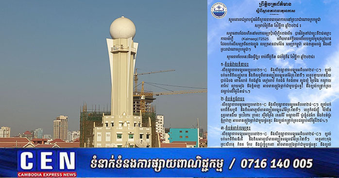 ភ្នំពេញ ៖ ក្រសួងធនធានទឹកនិងឧតុនិយម បានចេញសេចក្តីជូនដំណឹងអំពីស្ថានភាពធាតុអាកាសនៅព្រះរាជាណាចក្រកម្ពុជា សម្រាប់ថ្ងៃទី៣ ខែវិច្ឆិកា ឆ្នាំ២០២៥៖