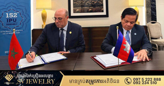 ទីក្រុងអ៊ីស្តង់ប៊ុល ៖ ក្នុងស្មារតីពង្រឹងកិច្ចសហប្រតិបត្តិការអន្តរសភាឱ្យកាន់តែស៊ីជម្រៅ នៅថ្ងៃទី១៦ ខែមេសា ឆ្នាំ២០២៦ម្សិលមិញនេះ គណៈប្រតិភូជាន់ខ្ពស់សភាកម្ពុជា ដឹកនាំដោយ ឯកឧត្តម អ៊ុច បូររិទ្ធ អនុប្រធានទី១ នៃព្រឹទ្ធសភា បានអញ្ជើញចូលរួមក្នុងជំនួបទ្វេភាគី និងពិធីចុះអនុស្សរណៈនៃការយោគយល់ ជាមួយសភាម៉ារ៉ុក ក្នុងឱកាសនៃមហាសន្និបាតលើកទី១៥២ នៃសហភាពអន្តរសភា (IPU) នៅទីក្រុងអ៊ីស្តង់ប៊ុល ប្រទេសតួកគីយ៉េ។