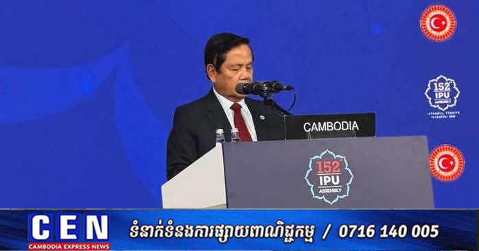 ឯកឧត្តម អ៊ុច បូរិទ្ធ អនុប្រធានទី១ ព្រឹទ្ធសភា នៃព្រះរាជាណាចកកម្ពុជា បានថ្លែងសុន្ទរកថាក្នុងអំឡុងកិច្ចពិភាក្សាទូទៅ នៃមហាសន្និបាតលើកទី ១៥២ របស់សហភាពអន្តរសភា (IPU)ក្រោមមូលបទ«ការពូនជ្រុំក្តីសង្ឃឹម ការថែរក្សាសន្តិភាព និងធានាយុត្តិធម៌សម្រាប់អ្នកជំនាន់ក្រោយ» ទីក្រុងស៊ីស្តង់ប៊ុល ថ្ងៃទី១៧ ខែមេសា ឆ្នាំ២០២៦។