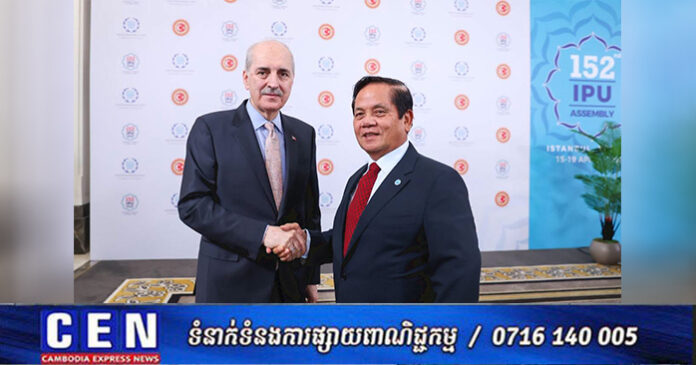 នៅថ្ងៃទី១៧ ខែមេសា ឆ្នាំ២០២៦ ឯកឧត្តម អ៊ុច បូររិទ្ធ បានជួបពិភាក្សាការងារទ្វេភាគីជាមួយ ឯកឧត្តម Numan Kurtulmuş ប្រធានរដ្ឋសភាជាតិតួកគីយេ។ ក្នុងកិច្ចសន្ទនា ឯកឧត្តម Numan Kurtulmuş បានស្វាគមន៍ការចូលរួមរបស់គណៈប្រតិភូកម្ពុជា ក្នុងមហាសន្និបាត IPU និងបានគូសបញ្ជាក់អំពីសារៈសំខាន់នៃការរក្សាទំនាក់ទំនងជាប្រចាំរវាងក្រុមមិត្តភាពសភានៃប្រទេសទាំងពីរ។ ភាគីទាំងពីរ ក៏បានលើកឡើងពីការរីកចម្រើននៃទំនាក់ទំនងសេដ្ឋកិច្ច ពាណិជ្ជកម្ម និងការតភ្ជាប់រវាងប្រជាជននៃប្រទេសទាំងពីរ រួមទាំងការហោះហើរត្រង់របស់ក្រុមហ៊ុន Turkish Airlines មកកាន់រាជធានីភ្នំពេញ ការផ្តល់អាហារូបករណ៍ដល់និស្សិតកម្ពុជា សកម្មភាពរបស់មជ្ឈមណ្ឌលវប្បធម៌ Yunus Emre និងការចូលរួមរបស់ទីភ្នាក់ងារ TİKA ក្នុងគម្រោងមនុស្សធម៌នៅកម្ពុជា។