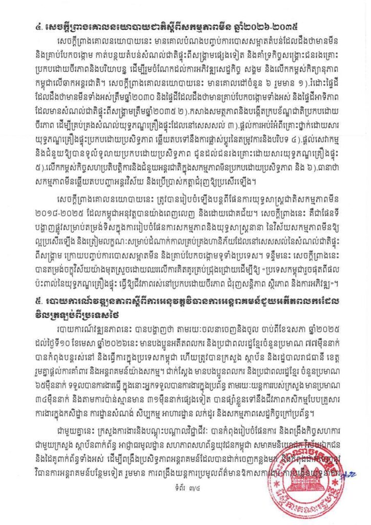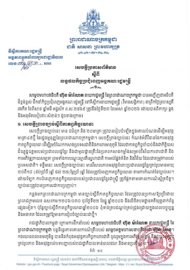 កិច្ចប្រជុំពេញអង្គគណៈរដ្ឋមន្ត្រីបានអនុម័តសេចក្តីព្រាងកម្មវិធីវិនិយោគសាធារណៈ ៣ឆ្នាំរំកិល ២០២៧-២០២៩។