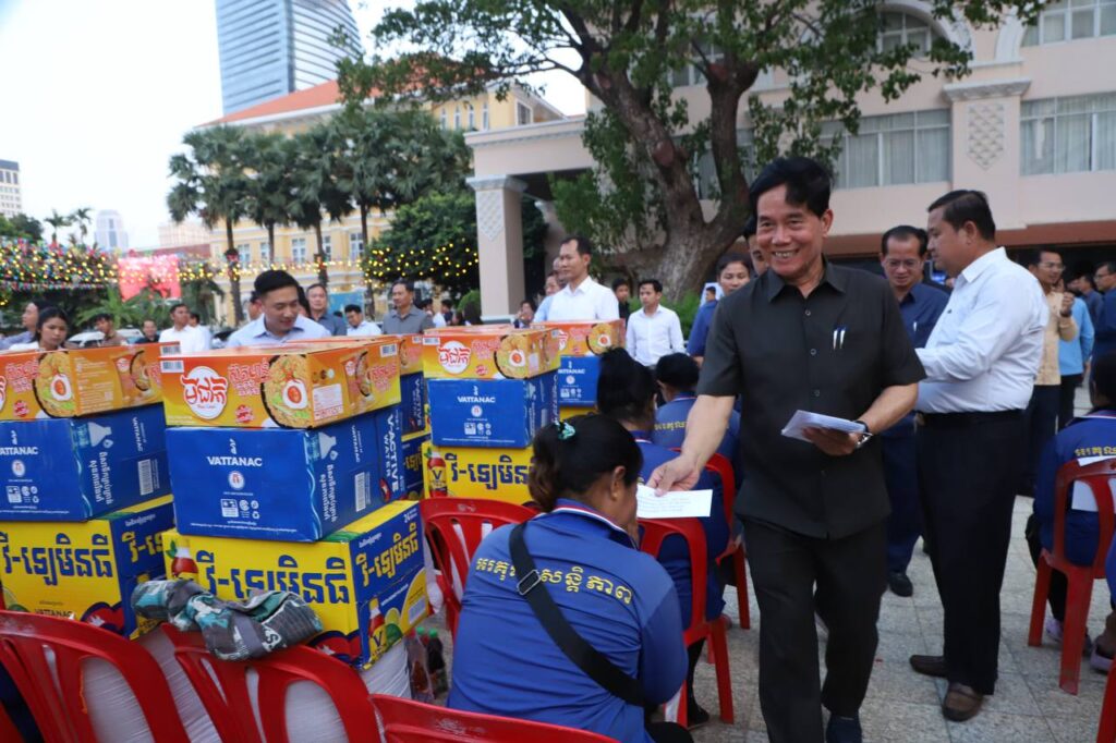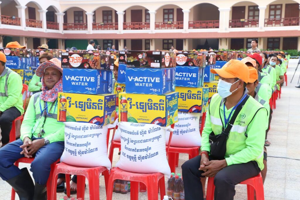 ភ្នំពេញ៖ដោយការយកចិត្តទុកដាក់ខ្ពស់ពីសម្តេចអគ្គមហាសេនាបតីតេជោ ហ៊ុន សែន និងសម្តេចកិត្តិព្រឹទ្ធបណ្ឌិត ប៊ុន រ៉ានី ហ៊ុនសែន សម្តេចមហាបវរធិបតី ហ៊ុន ម៉ាណែត និងលោកជំទាវបណ្ឌិត ពេជ ចន្ទមុនី បុគ្គលិកសម្អាតអនាម័យ និងប្រជាការពារ ដែលបានប្រតិបត្តិការផ្ទាល់ បោសសម្អាតអនាម័យក្នុងព្រឹត្តិការណ៍នគរសង្ក្រាន្ត ឆ្នាំ២០២៦នៅរាជធានីភ្នំពេញចំនួន ៧០៦នាក់ ទទួលបានអំណោយជាថវិកានិងគ្រឿងឧបភោគបរិភោគ ក្រោមការរៀបចំរបស់សហភាពសហព័ន្ធយុវជនកម្ពុជាជាមួយរដ្ឋបាលរាជធានីភ្នំពេញ។